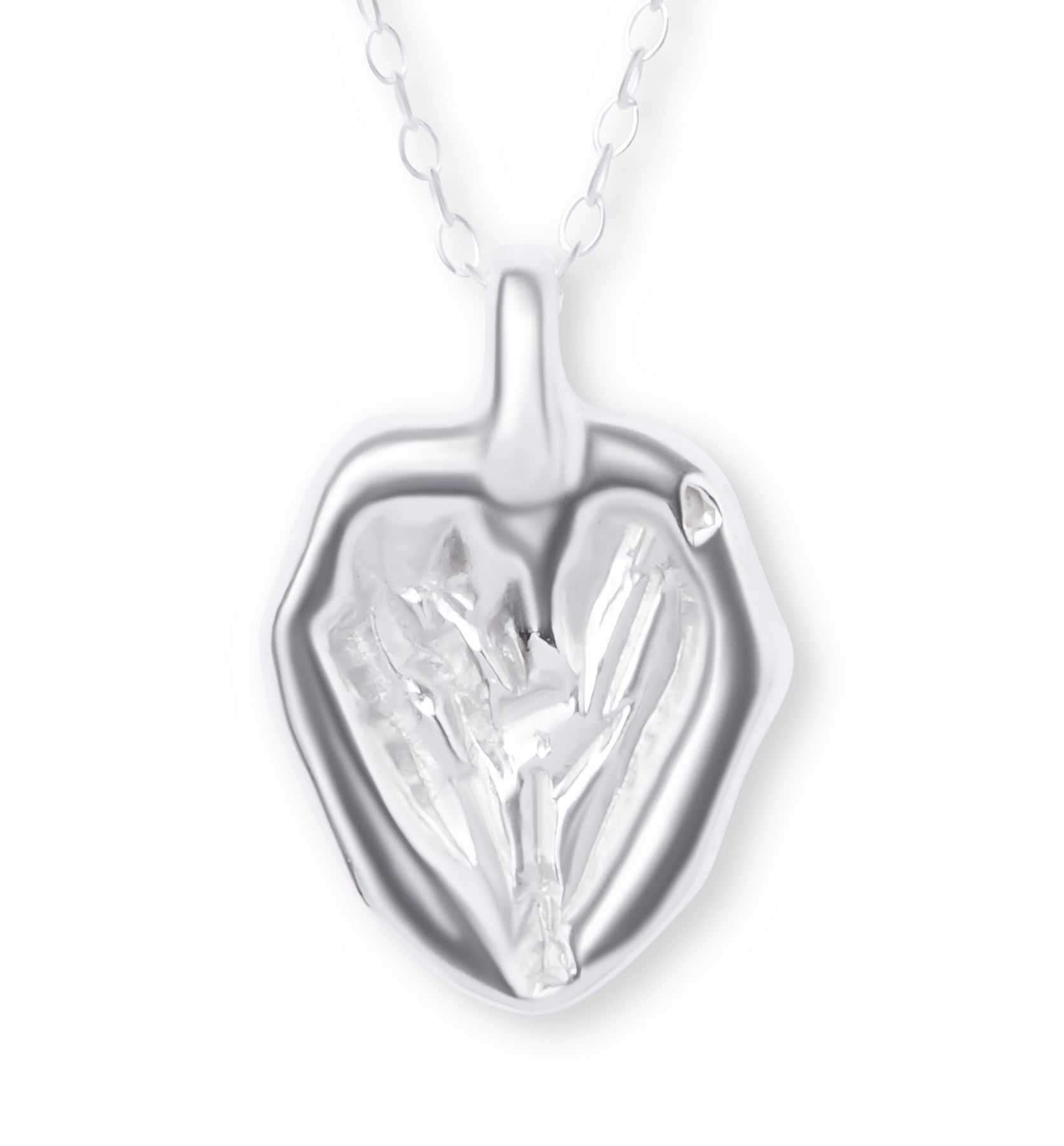 The You Melt My Heart Silver Pendant by Ava Jane Jewellery features a handmade, heart-shaped sterling silver design with organic textures and a shiny finish, suspended from a delicate chain for an artistic, modern touch.