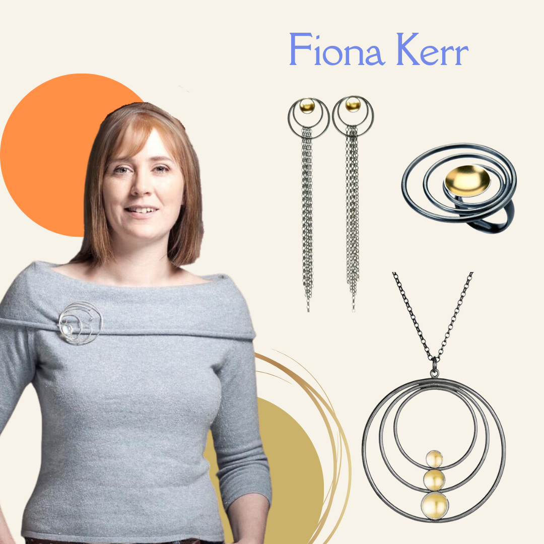 Fiona Kerr's jewellery is crafted in her workshop in Northern Ireland, using traditional techniques, with forms which reflect ancient Celtic spirals found in nature. Her Black & Gold collection uses a fine layer of 22ct gold fused onto oxidised silver.