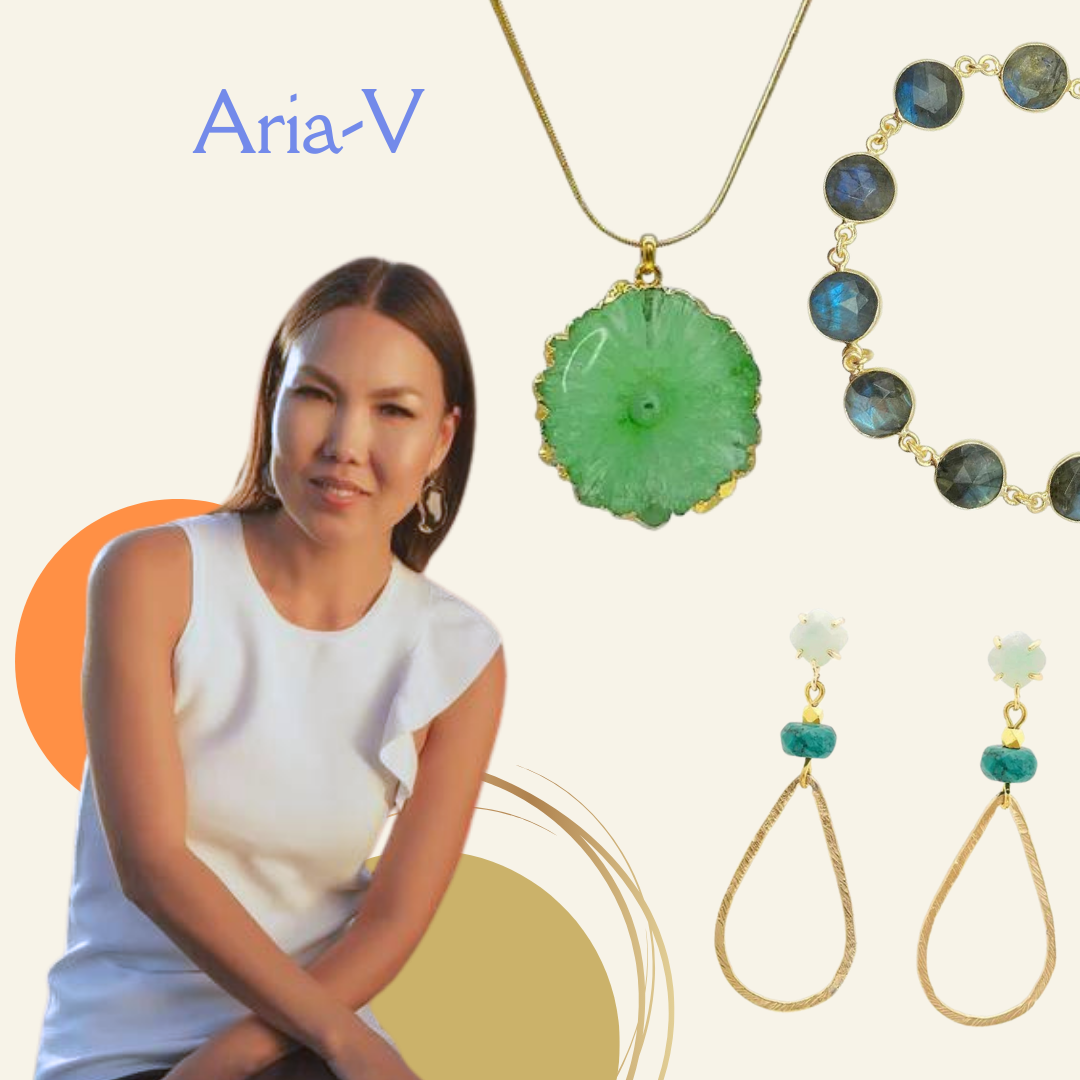 Aria-V designs are handcrafted in Dublin, inspired by her Mongolian heritage, global travel, nature, and fashion. Each piece fuses Tibetan, Indian, Aztec, and Roman influences, celebrating nature’s beauty in timeless, eclectic styles.
